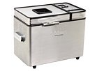You'll be amazed at the varieties of bread this machine can bake at the touch of a button! ; Fully automatic operation with 16 preset menu options, including Low Carb, Gluten-Free and Artisan Dough, for a total of over 100 bread, pizza dough, sweet cake and jam choices! ; Commercial-quality stainless steel construction looks fabulous on the counter top and is easy to keep clean. Convection feature circulates air for better texture and crust color. Audible tone reminds you when it's time to add mix-in ingredients such as fruit and nuts. Handy features include: •15-minute pause •Bake-only option •12-hour delay start •Power failure backup ; Large stay-cool handles make the unit safe and easy to maneuver. Comes with a measuring cup, tablespoon and instruction/recipe booklet. Model number: CBK-200 ; Watts: 680. Dimensions: 14.0 wide x 8.0 deep x 11.0 high. Weight: 17.0 lbs. 7735202 Cookware